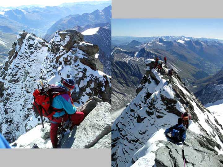 Zurück geht es über die schmale Gratschneide des Kleinglockner mit den entsprechenden Wartezeiten