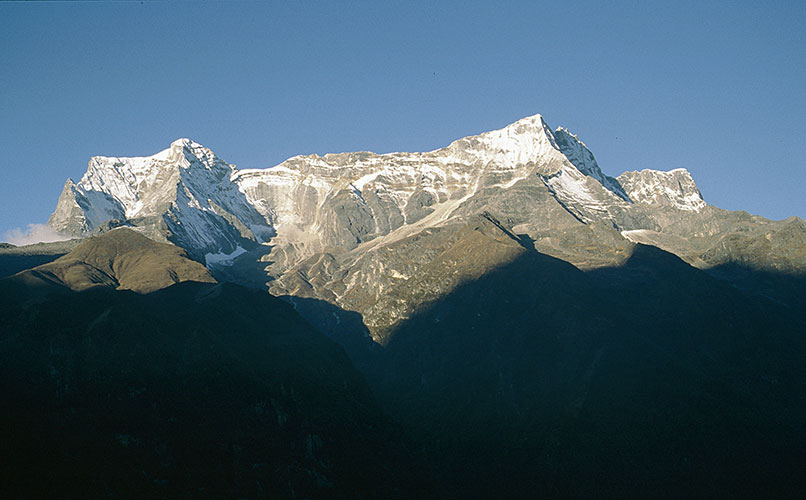 auf der anderen Seite sieht man von Namche Bazar aus zum Kongde Ri 6187m