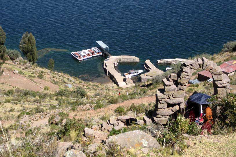 steil geht es zum kleinen Hafen von Taquile hinunter