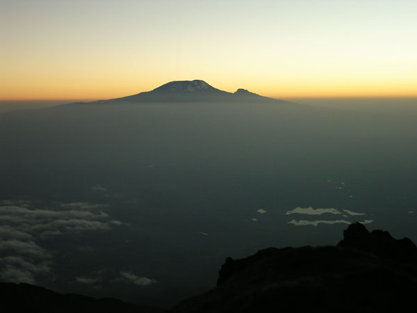 nach gut 5 Stunden pole - pole - Fussmarsch geht die Sonne hinter dem Kili auf
