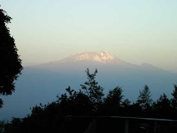 der Kilimanjaro wird von den letzten Sonnenstrahlen beleuchtet