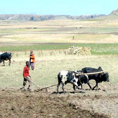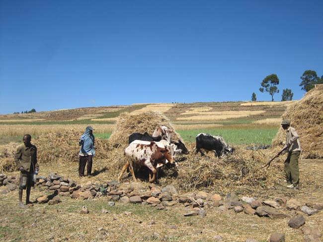 Dreschplatz - - - gepflügt wird meist noch mit dem Ochsenpflug