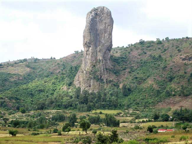 In den Bergen nördlich des Tana Sees begegnet einem diese Basaltspitze