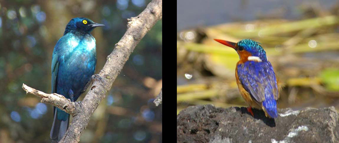 Rotschulterglanzstar und Haubenzwerfischer ( Malachit - Eisvogel )
