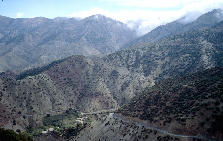 Vom über 2000 m hohen Pass geht es mit dem Bike hinunter in das Tal des Oued Nfis