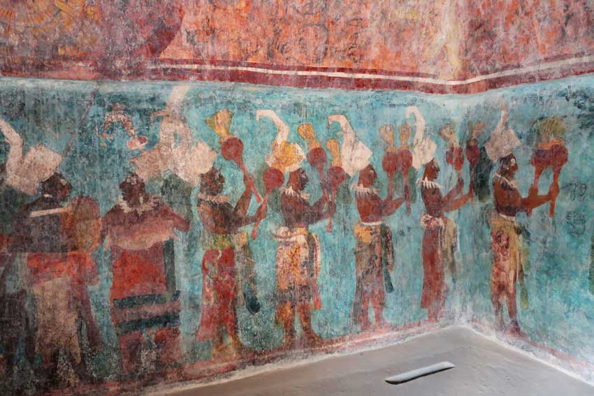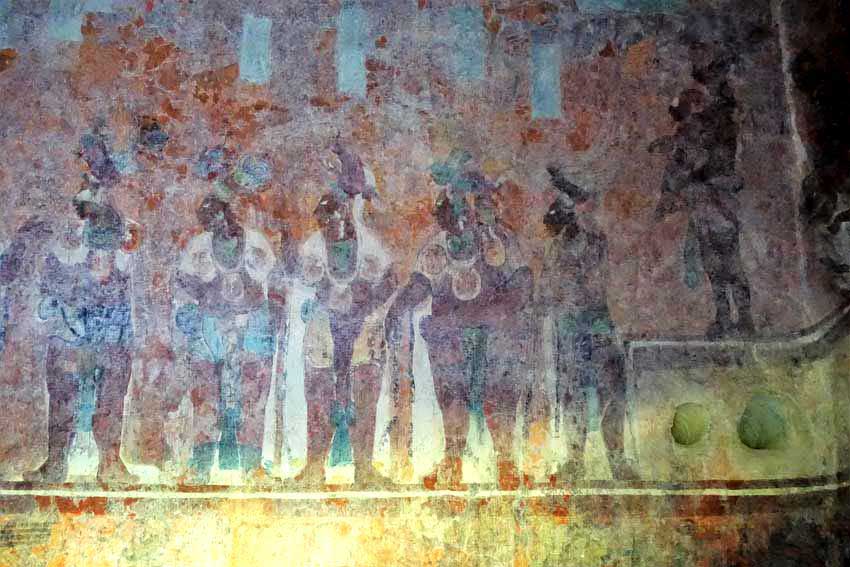 Erst 1946 wurde das kleine Zeremonialzentrum im Gebiet der Lacandonen entdeckt. Die Sensation waren die prachtvollen Wandmalereien aus dem 8. Jh., die in einem der Tempel gefunden wurden. Sie geben Aufschluss über Leben und Mythologie der Maya.