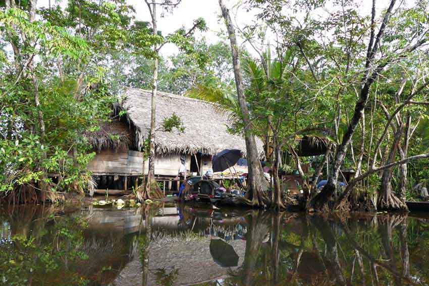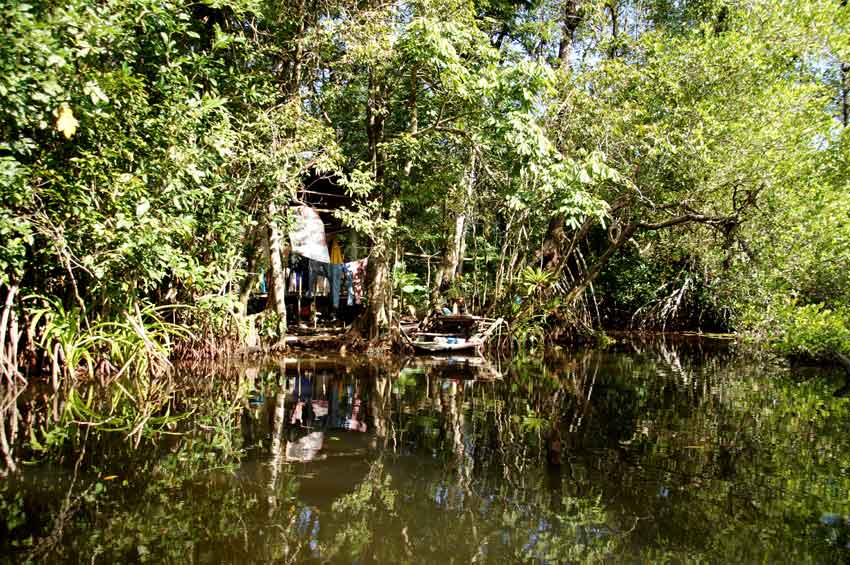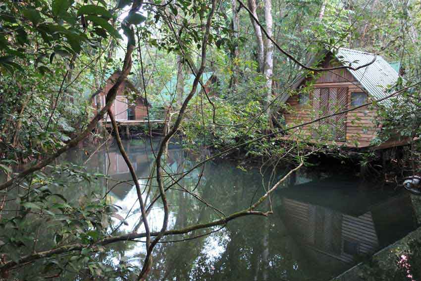 Im Mangroven-Urwald versteckt liegt diese Lodge. Die Hütten sind nur über Stege erreichbar.