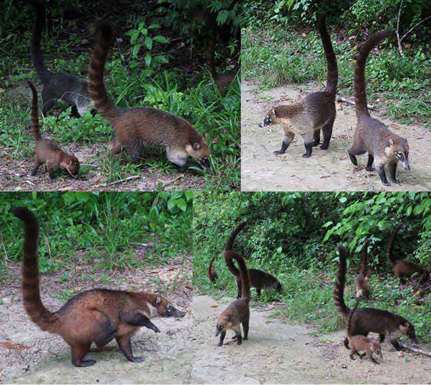 Zum Schluss treffen wir noch auf eine Grossfamilie Nasenbären, die sich von uns kaum stören lassen