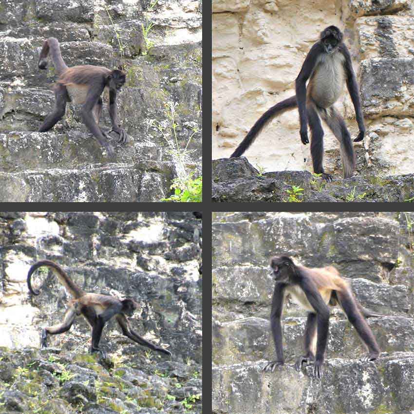 Die Affen toben auf der Pyramide herum