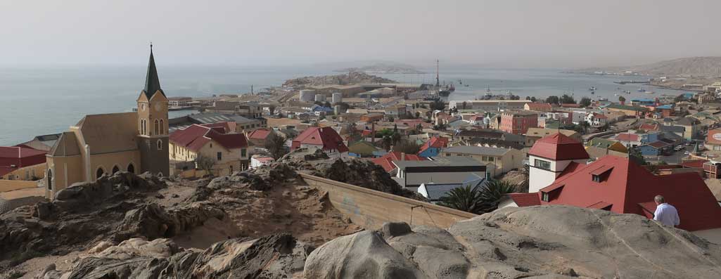 Vom Diamantberg oberhalb der Felsenkirche (1911) hat man einen wunderbaren Überblick über die Lüderitzbucht.