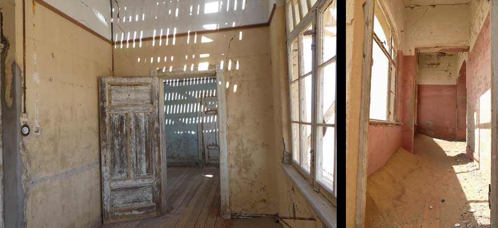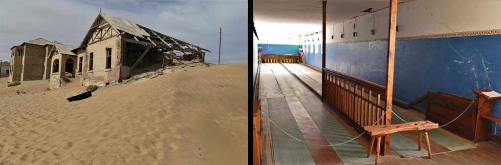 Kasino, Schule, Turnhalle, Krankenhaus, Läden und exklusive Wohnhäuser entstanden. Bis zum 1.Weltkrieg wurde in Kolmanskop 1 t Diamanten gefördert.
