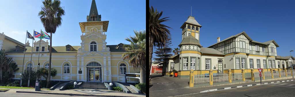 Eines der schönsten Gebäude ist der 1901 erbaute alte Bahnhof, heute ein Luxushotel. Das Woermannhaus mit dem Damara-Turm wurde 1894 erbaut.