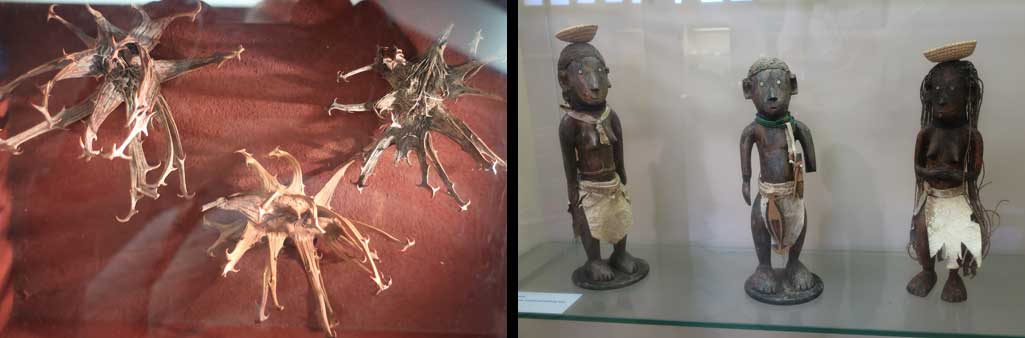 Das 1951 gegründete Museum ist als Heimat- und Naturkundemuseum konzipiert. Links Teufelskrallen, rechts Figuren des Damara-Stammes.