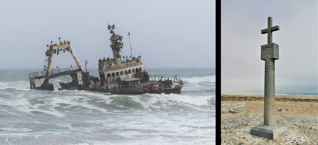 An der berüchtigten Skelettküste stranden immer wieder Schiffe. Im Jahre 1486 errichtete der Portugiese Diago Cao am Cape Cross dieses Steinkreuz.