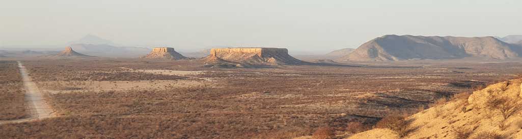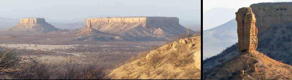 Im Tal des Ugab-Flusses gibt es etliche Tafelberge aus Sedimentgestein. Am bekanntesten ist die VINGERKLIP.
