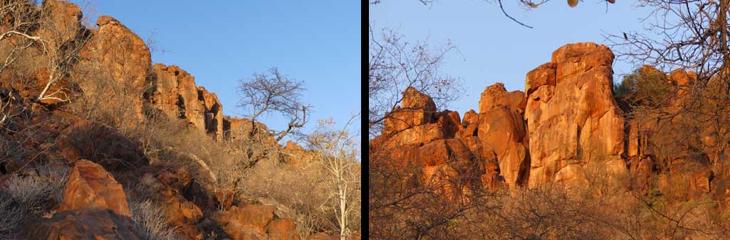 Der WATERBERG ist ein riesiges Plateau, 48 km lang, 15 km breit und 200 m hoch. Regenwasser versickert auf dem Plateau und tritt am Fuß des Berges als Quelle wieder aus.