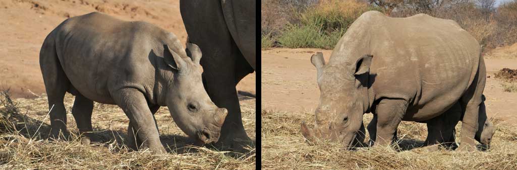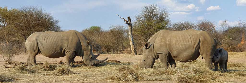 Der Rhino Drive zum Sonnenuntergang führt die Touris zu den gehegten und gepflegten Weißen Nashörnern im Busch.