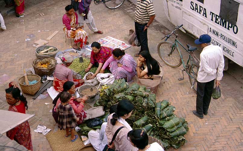 auf den Plätzen bieten die Bauern ihre Waren an - hier in Patan
