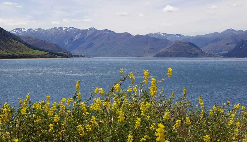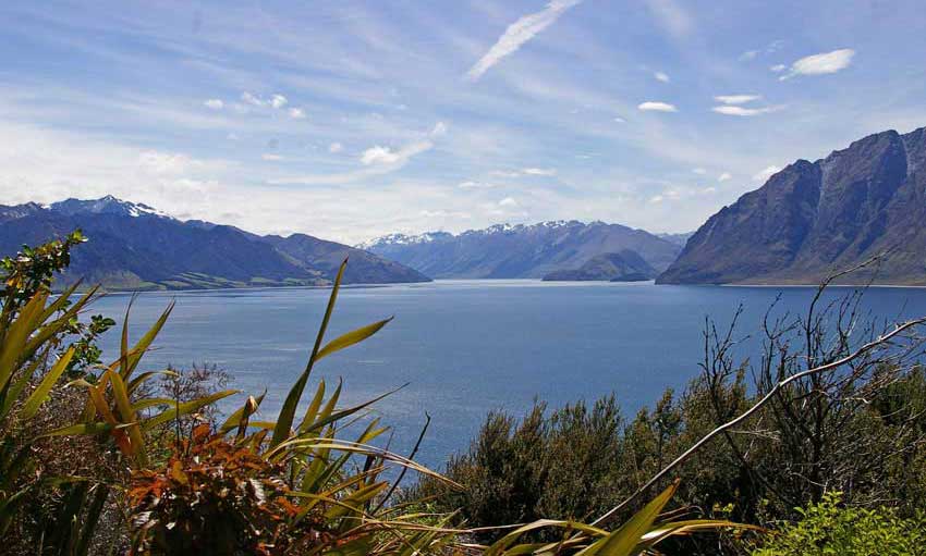 Lake Hawea ist 35 km lang und seine tiefste Stelle liegt unter dem Meeresspiegel