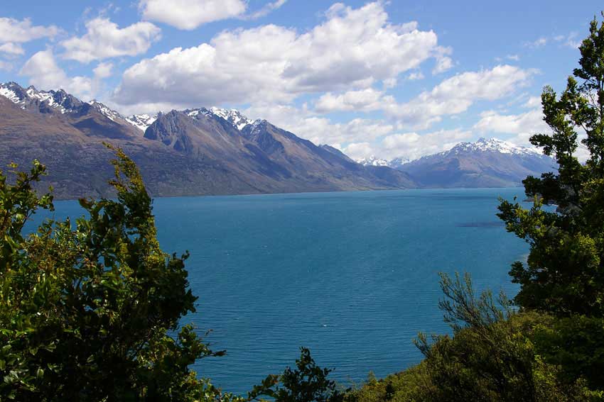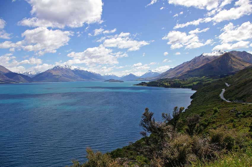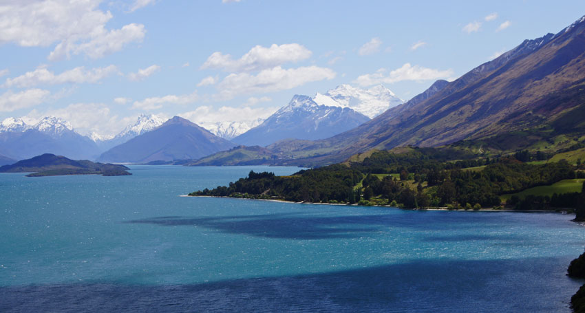 Fährt man von Queenstown nach Glenorchy tun sich bald etliche Aussichtspunkte auf den See auf