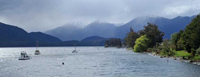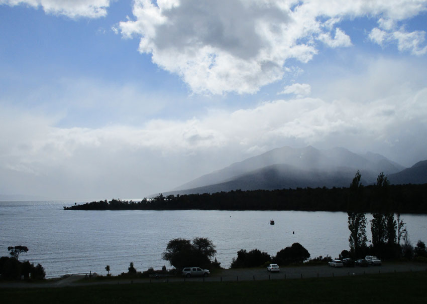 Über den Bergen des Fiordland hängen oft die Regenwolken und im Ort Te Anau scheint die Sonne