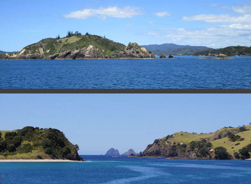 Oben : Die Moturua Islands und unten : die Meerenge zwischen der Insel Waewaetorea und der Insel Urupukapuka