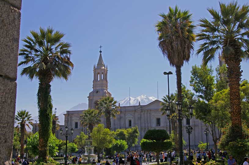 im Zentrum die Plaza Principal - dahinter der Nevado Chachani