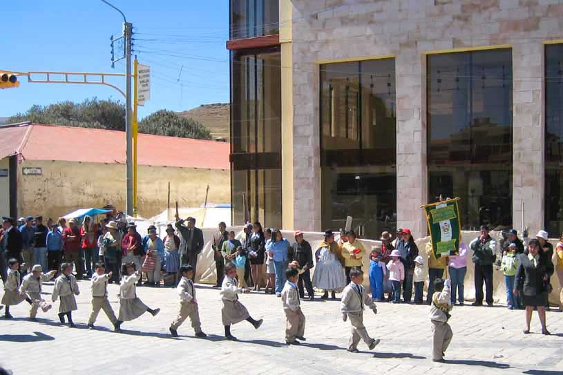 Beim Schulfest in Ayaviri marschieren die Kleinen in Uniform
