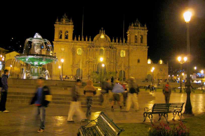 die Plaza de Armas ist auch Treffpunkt bei Nacht