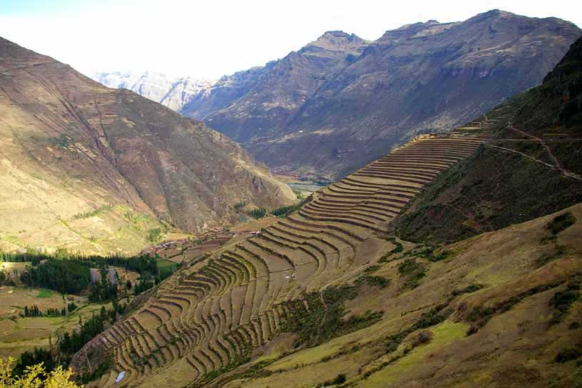 Hoch über dem Rio Urubamba und über riesigen Terrassenanlagen