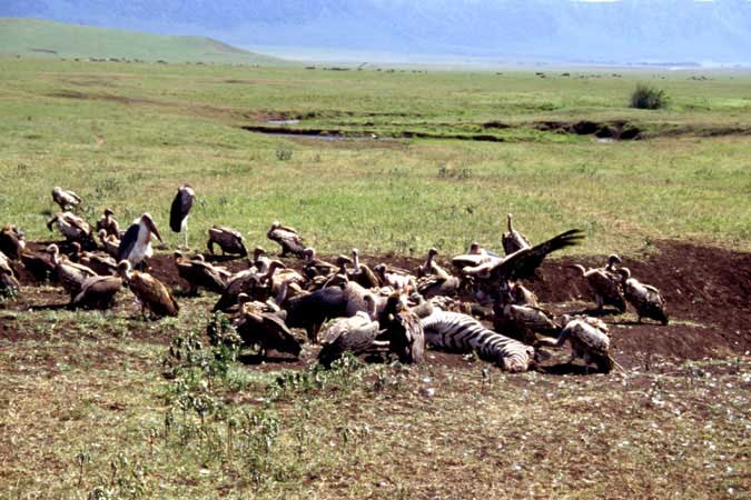 doch da hat es ein Zebra erwischt und die Geier schlagen sich um die Beute