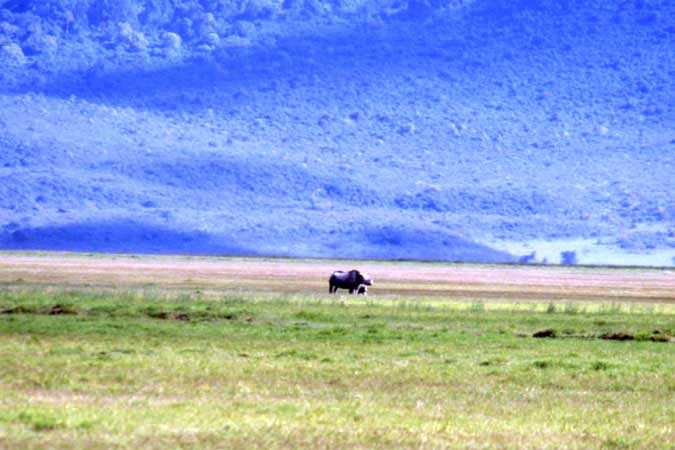 selten geworden, schwer zu erkennen und weit entfernt von den Jeep-Roads : das Nashorn, auch das gehört zu den "big five"