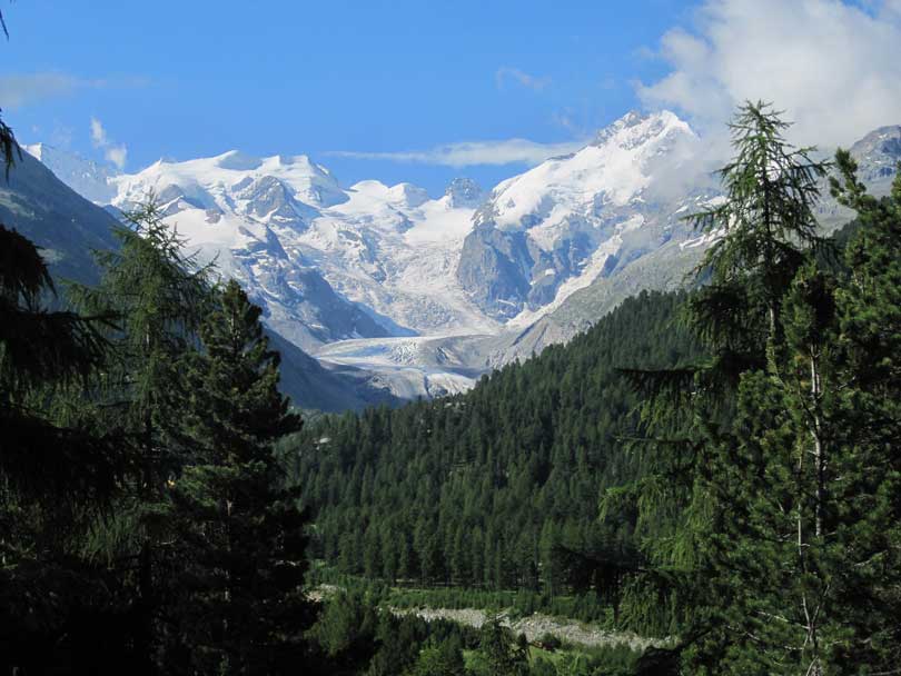 freier Blick auf die herrlichen Berge der Bernina
