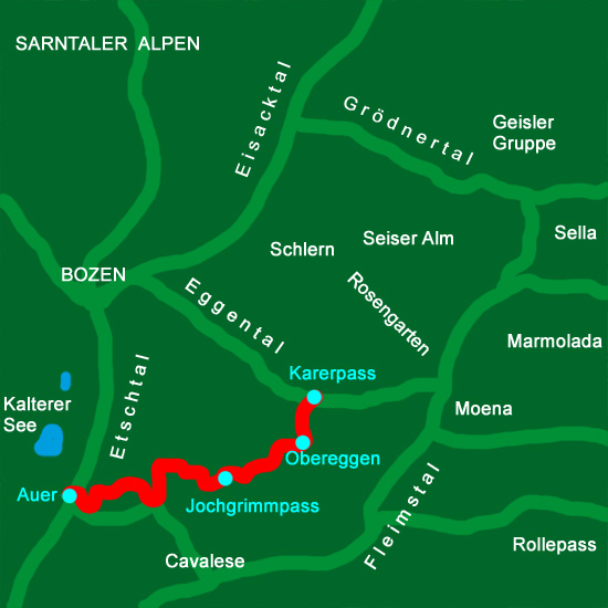 Vom Karer See über Obereggen ist das Lavazè Joch 1807 m erreicht