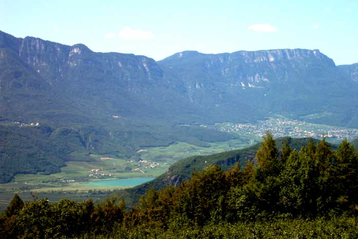 Das Panorama reicht vom Alpenhauptkamm über das Schlernmassiv und den Rosengarten bis zum Latemar