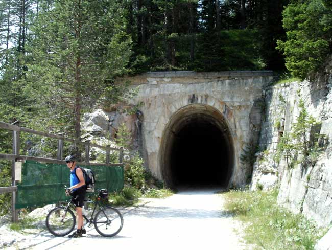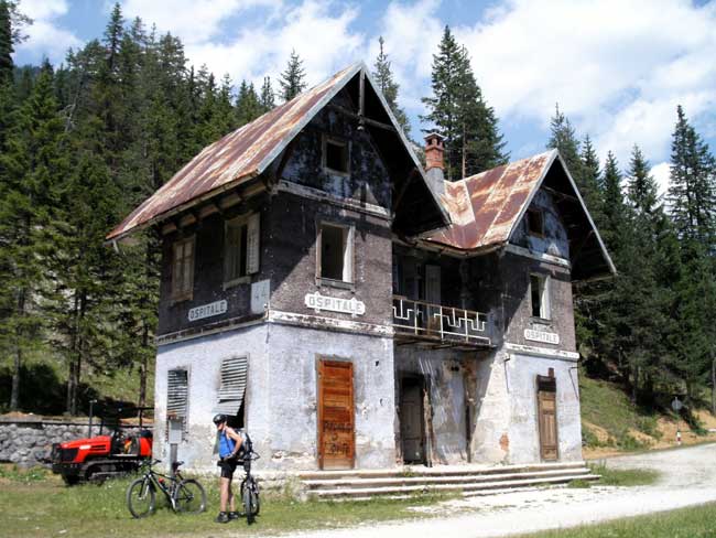 der alte Bahnweg führt am verlassenen Bahnhof Ospitale vorbei