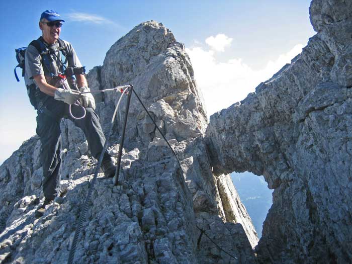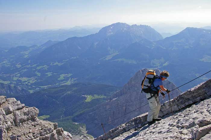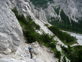 erst wird abgeklettert, dann geht's steil und rutschig abwärts