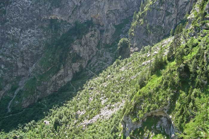 auf der anderen Seite des Tals : die "Saugasse" hinauf zum Kärlinger Haus